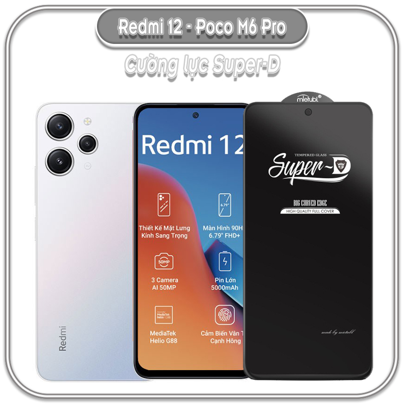 Kính cường lực SUPER~D dùng cho máy Redmi 12