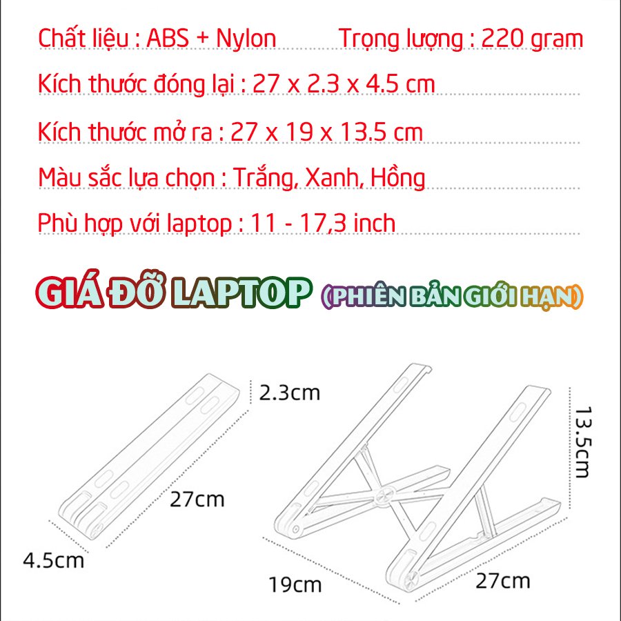 _ Kích thước đóng lại : 27 x 2.3 x 4.5 cm.