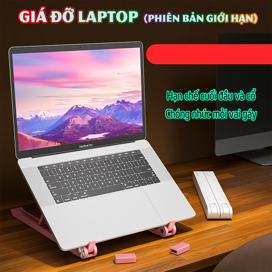 Giá đỡ di động cao cấp tản nhiệt chống trượt cho máy tính - Hồng.