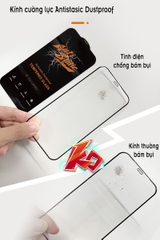- Kính cường lực Antistatic Dustproof bảo vệ chống trầy cực tốt cho máy nhưng lại không ảnh hưởng đến hiển thị và cảm ứng
