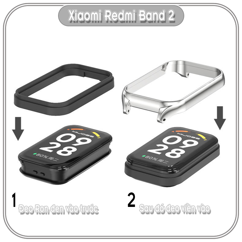 Bộ sản phẩm đầy đủ : 01 giấy hướng dẫn , 02 đệm cao su , 01 dây kim loại thay thế cho Redmi Band 2